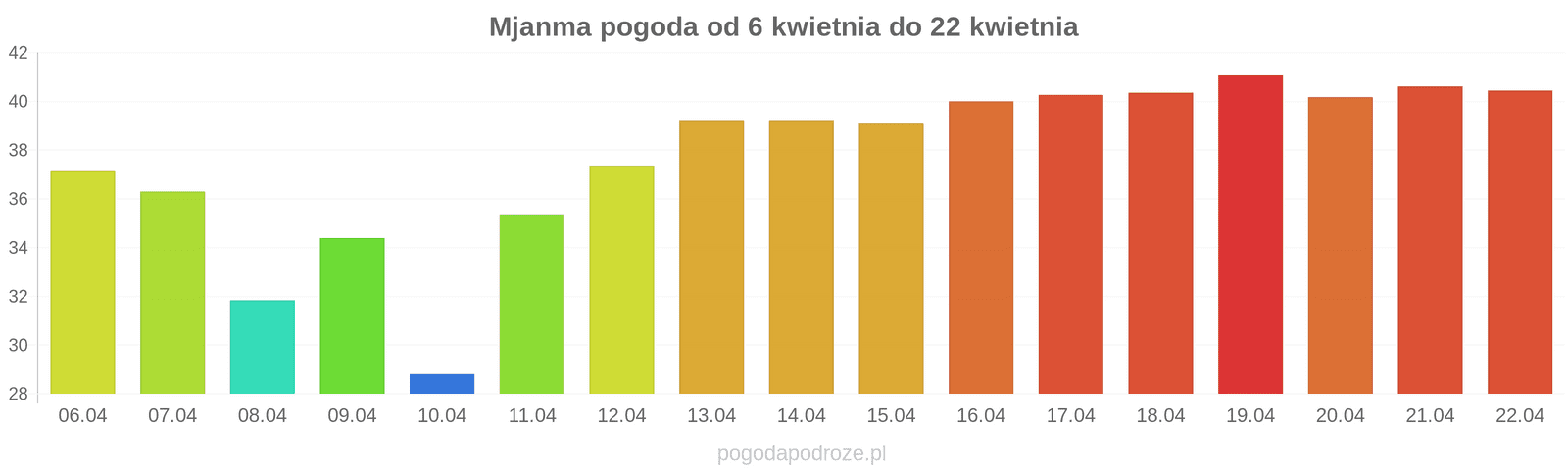 - W kwietniu regularnie występują fale upałów. W dolinie rzeki Irawadi, w miastach takich jak Mandalay czy Bagan, mogą być naprawdę uciążliwe.