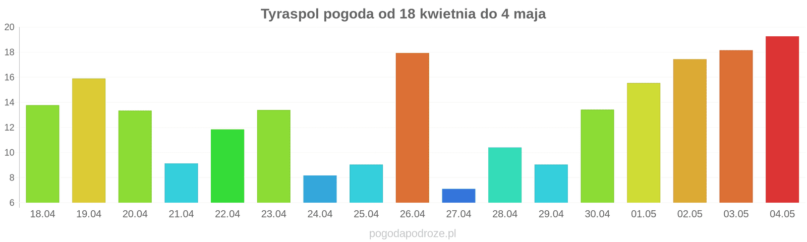 Opis pogody w najbliżych 10 dniach, Sprawdź kiedy będzie najcieplej, kiedy będzie słonecznie, a kiedy jest ryzyko opadów i zachmurzenia w Tyraspol. Warunki pogodowe oraz prognoza jest aktualizowana codziennie.
