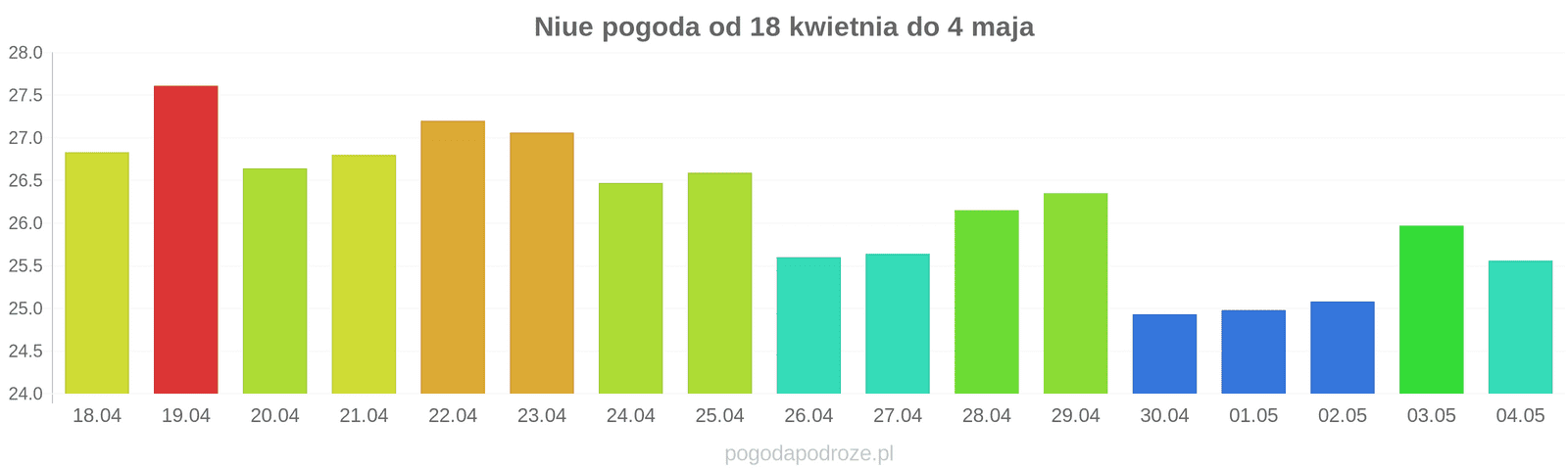 Temperatura wyniesie średnio: 27℃