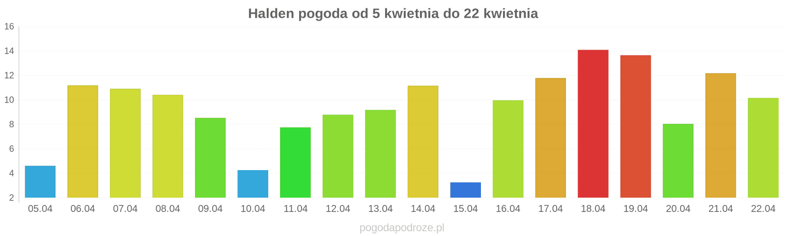 Opis pogody w najbliżych 10 dniach, Sprawdź kiedy będzie najcieplej, kiedy będzie słonecznie, a kiedy jest ryzyko opadów i zachmurzenia w Halden. Warunki pogodowe oraz prognoza jest aktualizowana codziennie.
