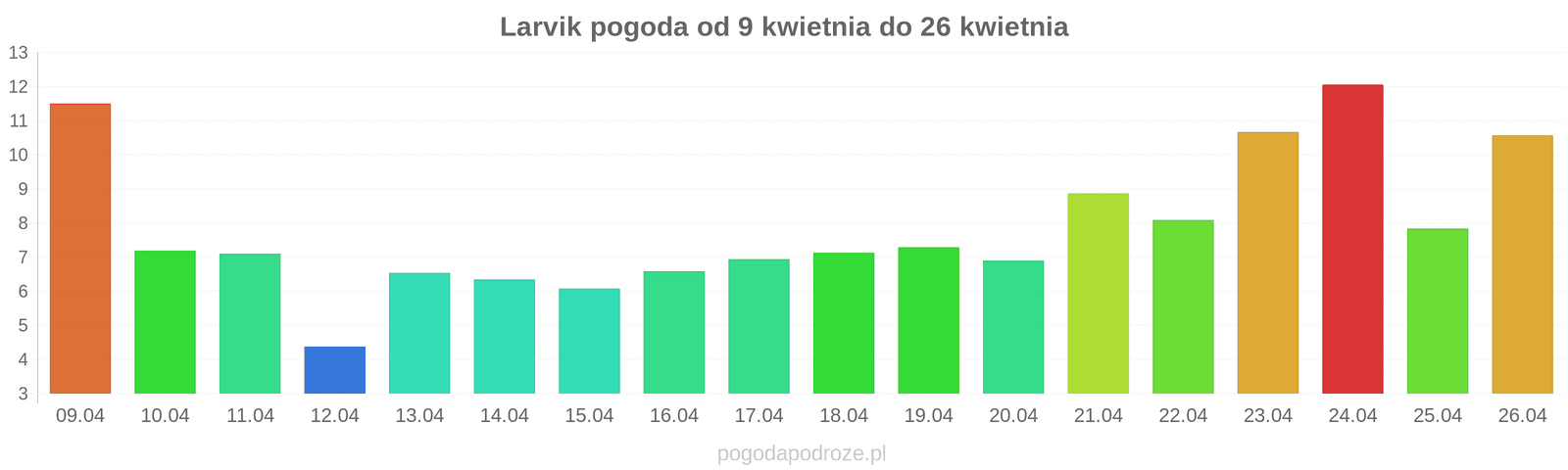 Opis pogody w najbliżych 10 dniach, Sprawdź kiedy będzie najcieplej, kiedy będzie słonecznie, a kiedy jest ryzyko opadów i zachmurzenia w Larvik. Warunki pogodowe oraz prognoza jest aktualizowana codziennie.