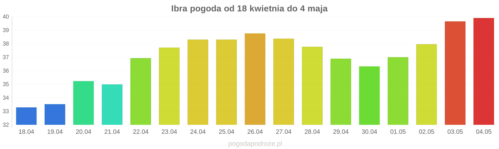 Jeśli wierzyć prognozom z odstępem czasu 7 dni to czeka nas dużo ciepła w Ibra w przyszłym tygodniu. Temperatura w ciągu dnia osiągnie 39 stopni.