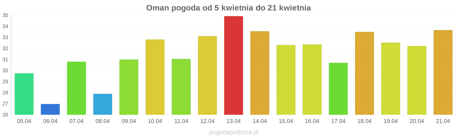 Temperatura wyniesie średnio: 33℃