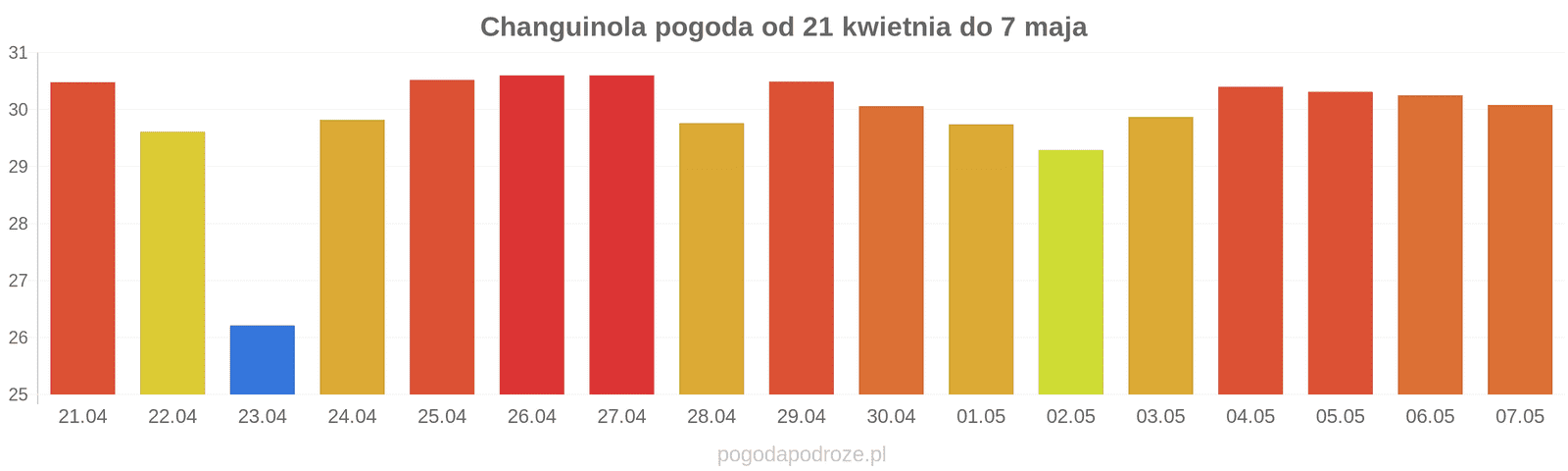 Temperatura wyniesie średnio: 30℃
