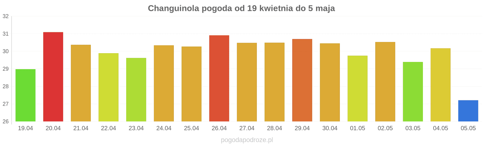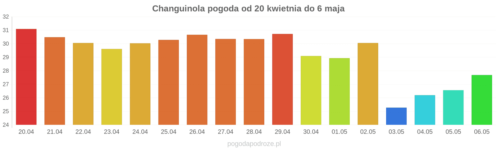 Temperatura wyniesie średnio: 31℃