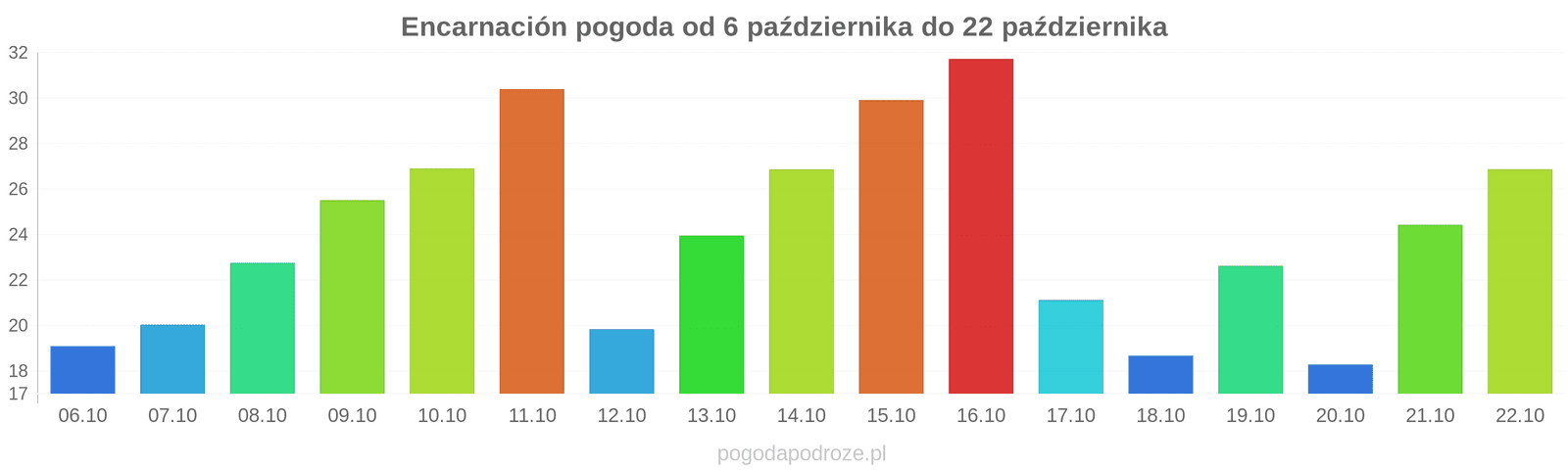 W nocy: 14℃Nad ranem: 9℃Wieczorem: 20℃słonecznieCiśnienie: 1021Wilgotność: 44%Wiatr: 4