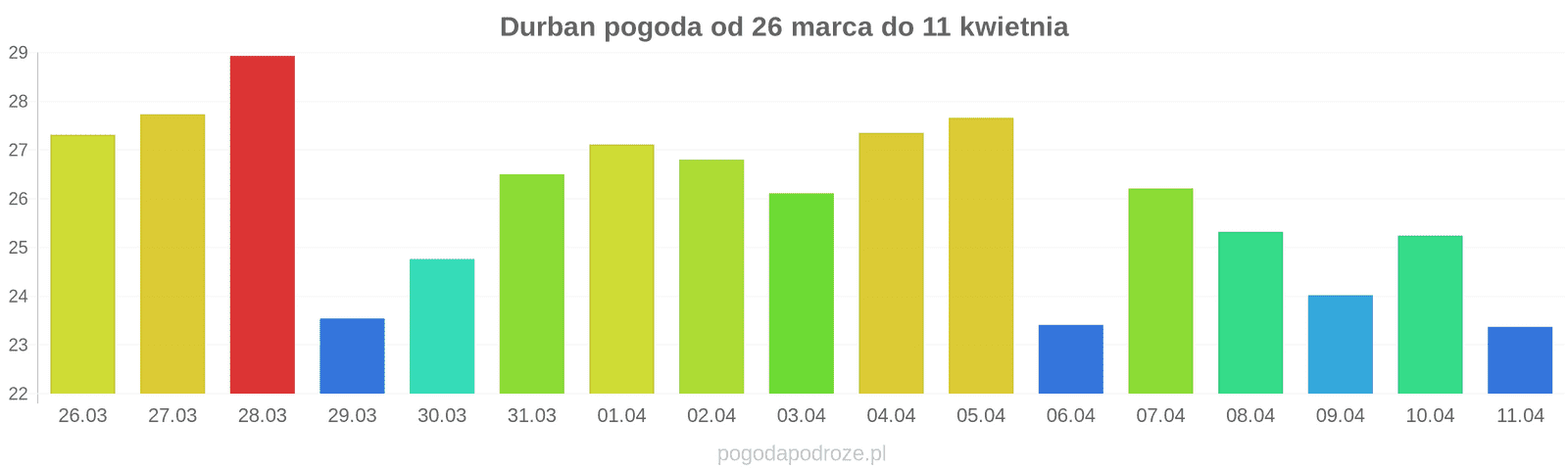 Z kolei jutro będzie jeszcze cieplej niż dziś w Durban. Termometry pokażą w ciągu dnia 29 stopni.
