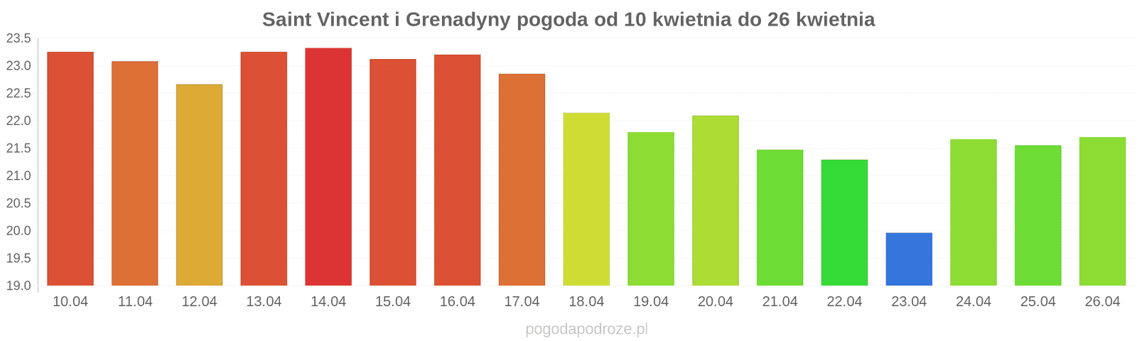 Jeśli chodzi o jutro, to temperatura będzie wyższa na Saint Vincent i Grenadyny i wyniesie w ciągu dnia około 23 stopnie.