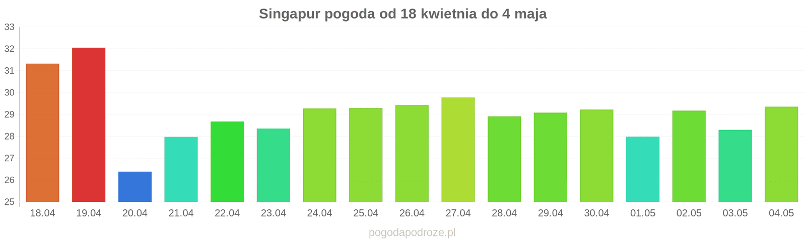 Jeśli damy wiarę prognozom z odstępem czasu 7 dni to czeka nas ochłodzenie w Singapurze w przyszłym tygodniu. Temperatura w ciągu dnia powinna spaść do 29 stopni.