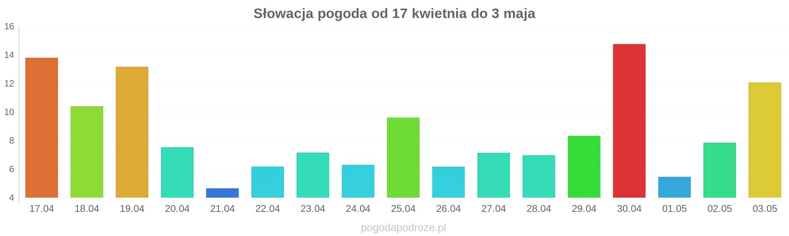 Temperatura wyniesie średnio: 13℃