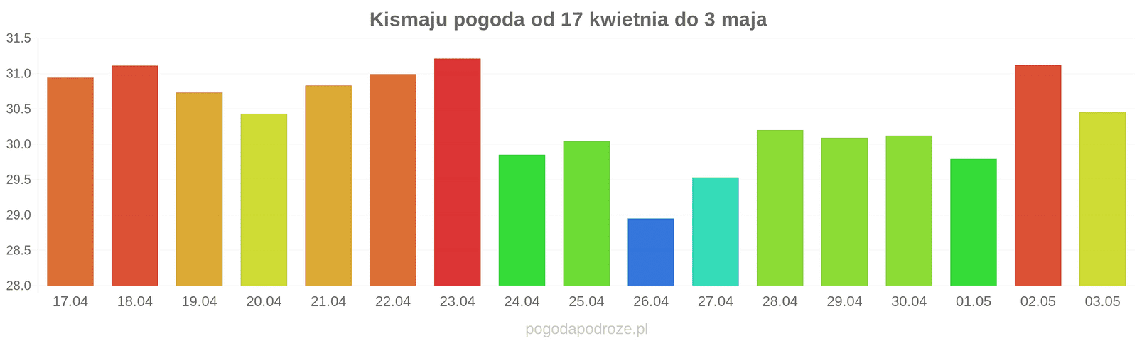 Temperatura wyniesie średnio: 31℃