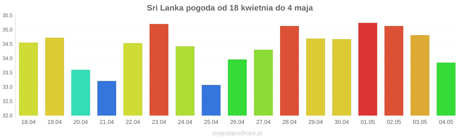 Temperatura wyniesie średnio: 33℃