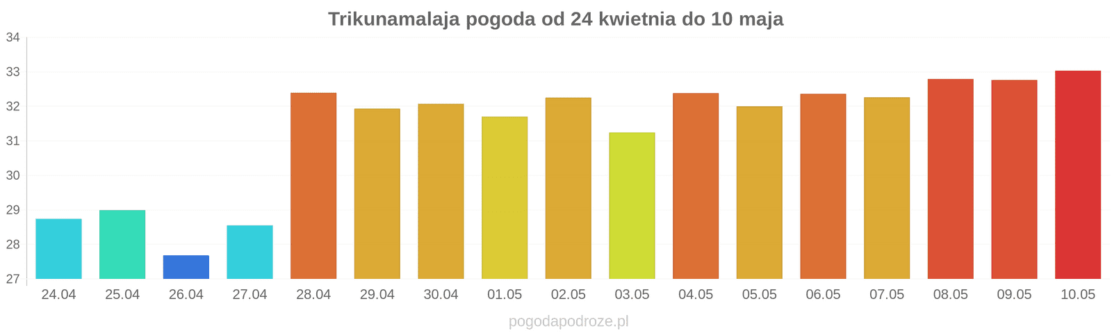 Pogoda w Trincomalee dnia: 27 kwietnia 2026 ( poniedziałek)