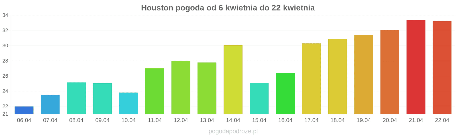 Najchłodniej w Houston jest w styczniu. Średnia temperatura to mniej więcej 17 stopni.