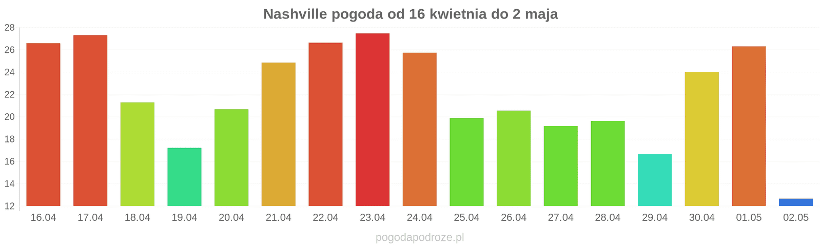 Temperatura wyniesie średnio: 27℃