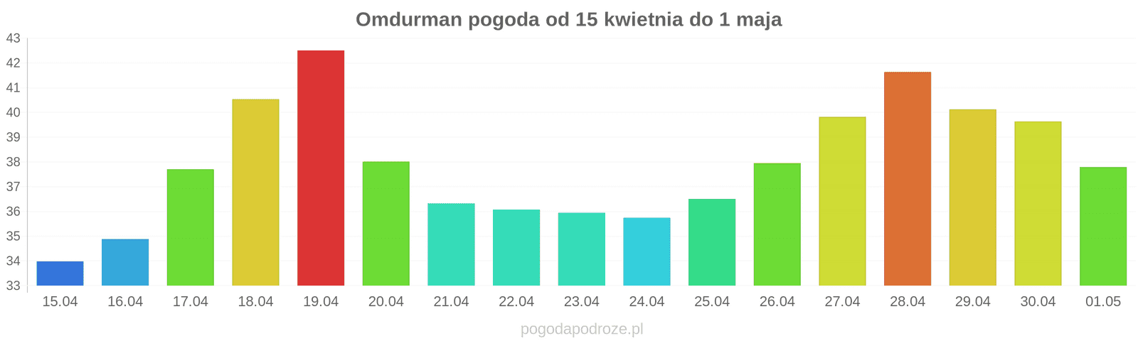 Z kolei jutro będzie jeszcze cieplej niż dziś w Omdurman. Termometry pokażą w ciągu dnia 38 stopni.