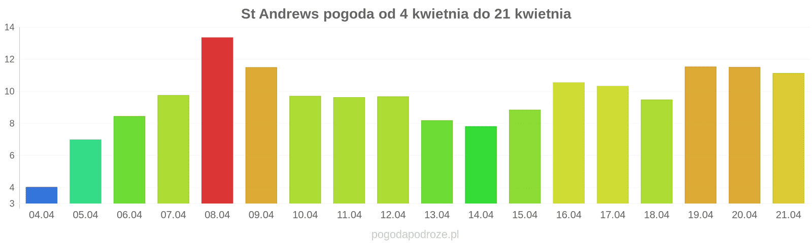 Pogoda w St Andrews dnia: 13 kwietnia 2026 ( poniedziałek)