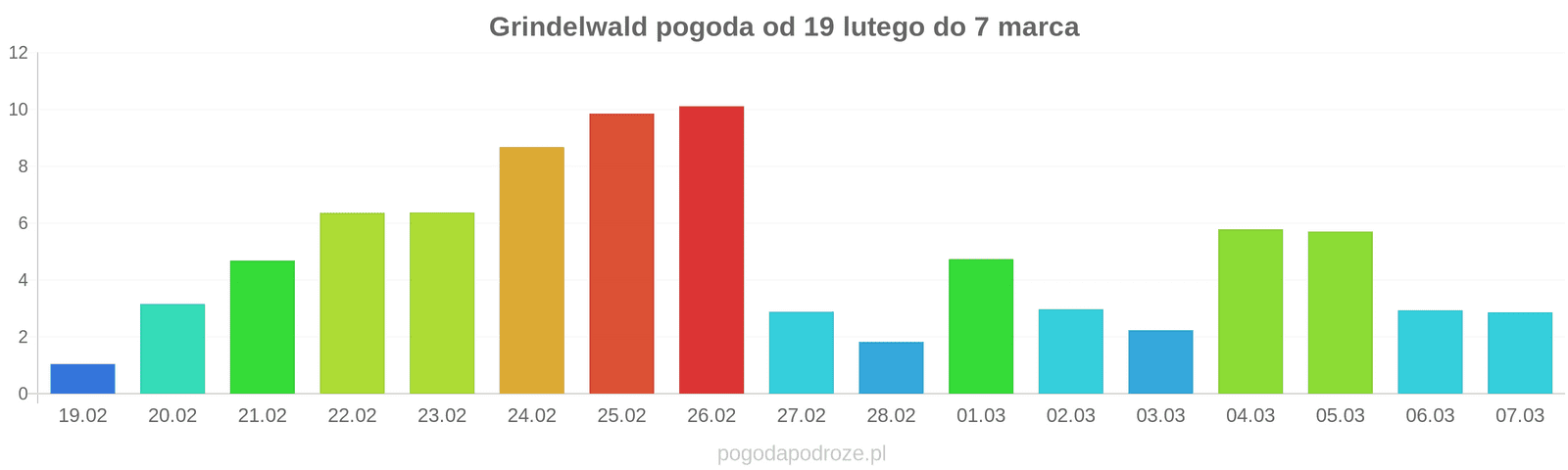 Opis pogody w najbliżych 10 dniach, Sprawdź kiedy będzie najcieplej, kiedy będzie słonecznie, a kiedy jest ryzyko opadów i zachmurzenia w Grindelwald. Warunki pogodowe oraz prognoza jest aktualizowana codziennie.
