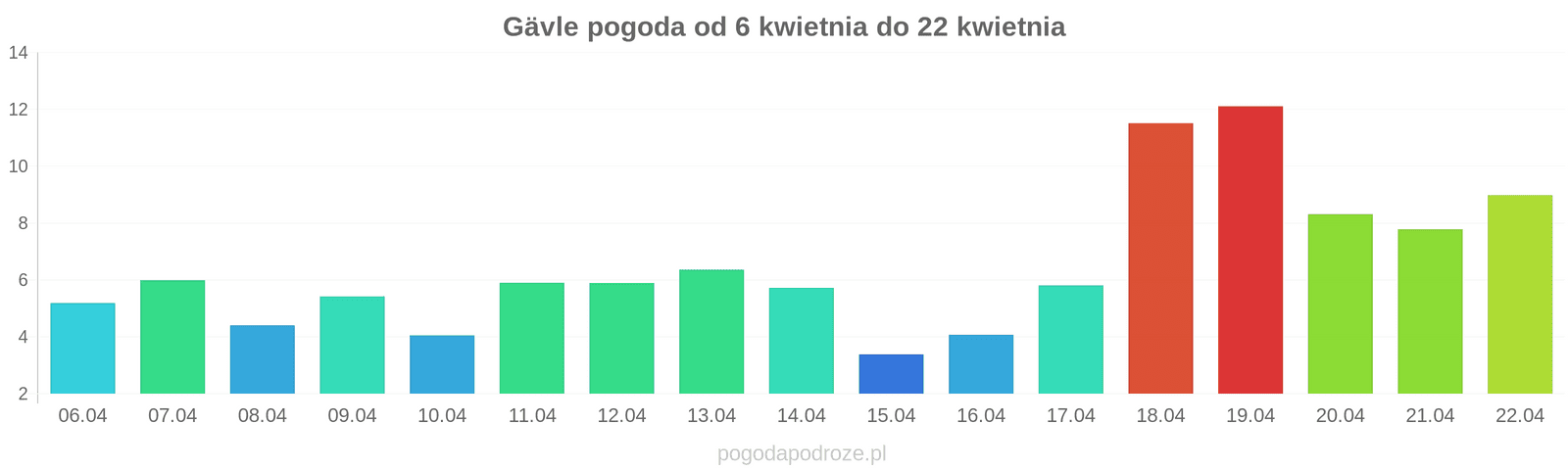 Opis pogody w najbliżych 10 dniach, Sprawdź kiedy będzie najcieplej, kiedy będzie słonecznie, a kiedy jest ryzyko opadów i zachmurzenia w Gävle. Warunki pogodowe oraz prognoza jest aktualizowana codziennie.