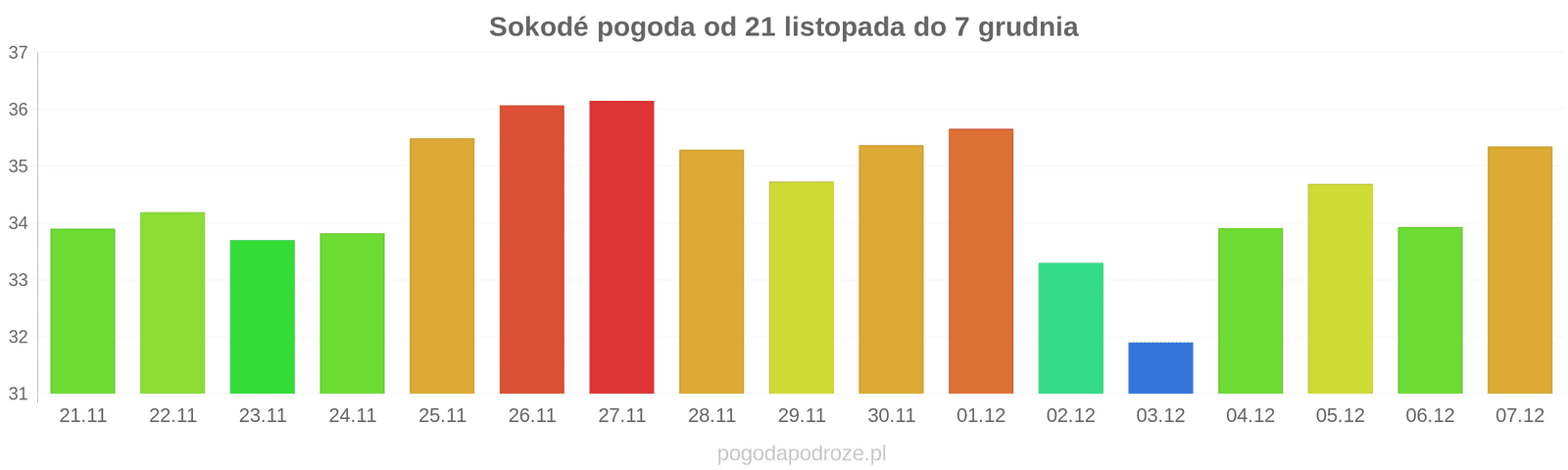W przypadku dnia jutrzejszego można mówić o spadku temperatury w Sokodé. Słupek termometry spadnie i wyniesie w ciągu dnia 34 stopnie.