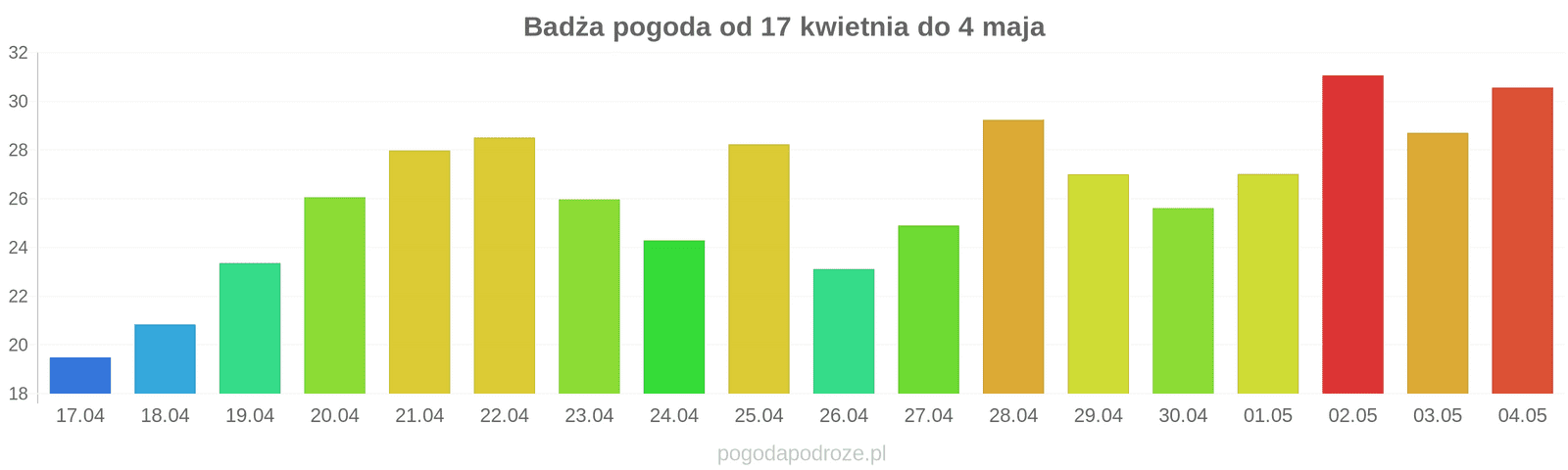 Temperatura wyniesie średnio: 26℃