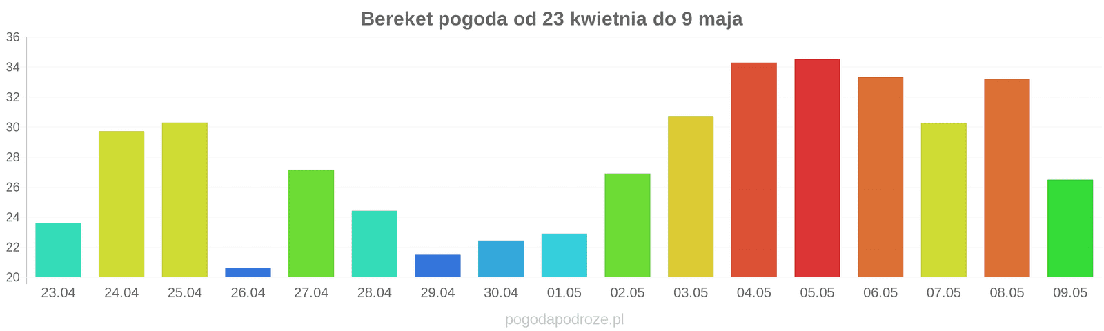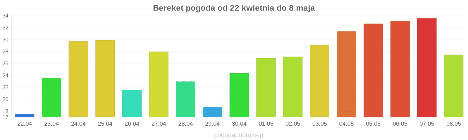 Temperatura wyniesie średnio: 32℃
