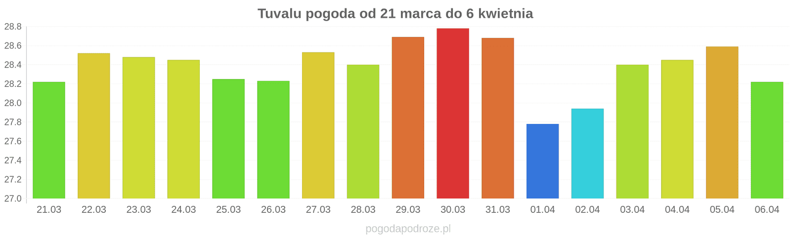 Temperatura wyniesie średnio: 28℃