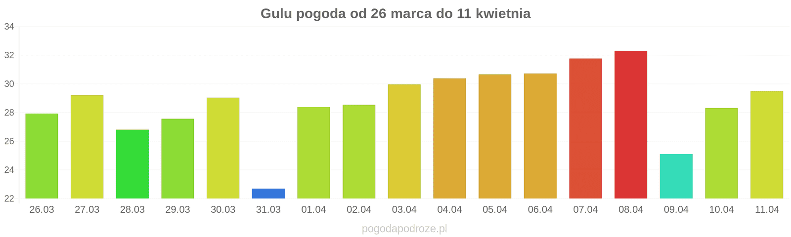 Temperatura wyniesie średnio: 31℃