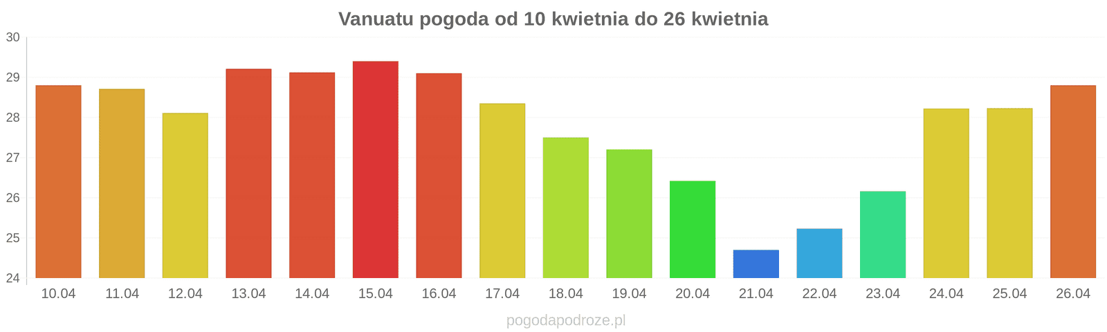 Temperatura wyniesie średnio: 29℃