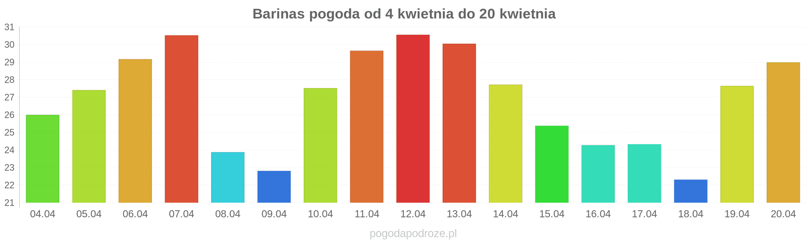 Z kolei jutro będzie jeszcze cieplej niż dziś w Barinas. Termometry pokażą w ciągu dnia 31 stopni.