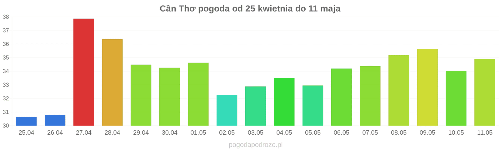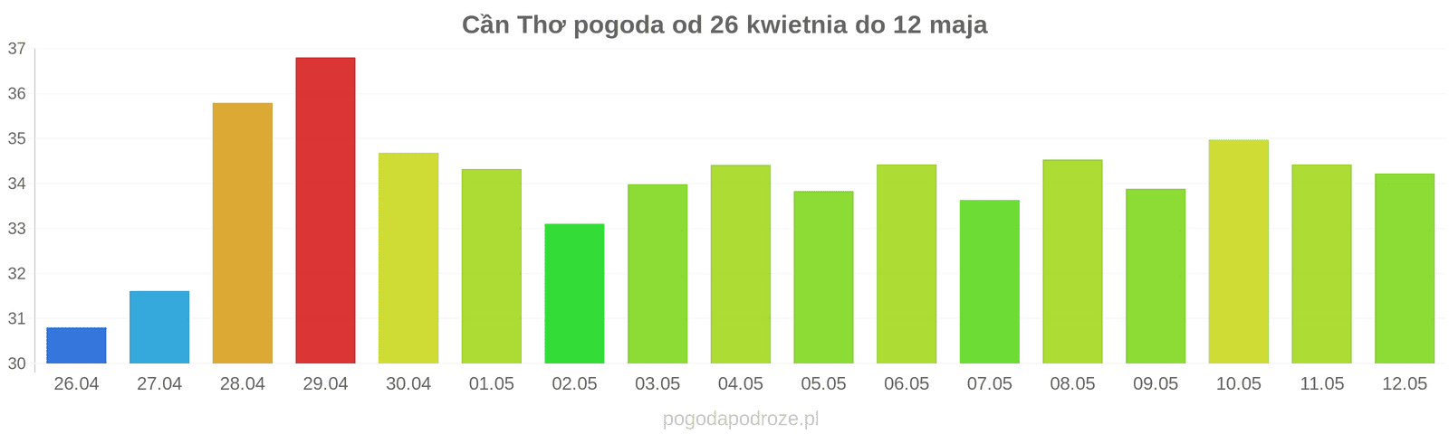 Jeśli wierzyć prognozom z odstępem czasu 7 dni to czeka nas dużo ciepła w Cần Thơ w przyszłym tygodniu. Temperatura w ciągu dnia osiągnie 33 stopnie.
