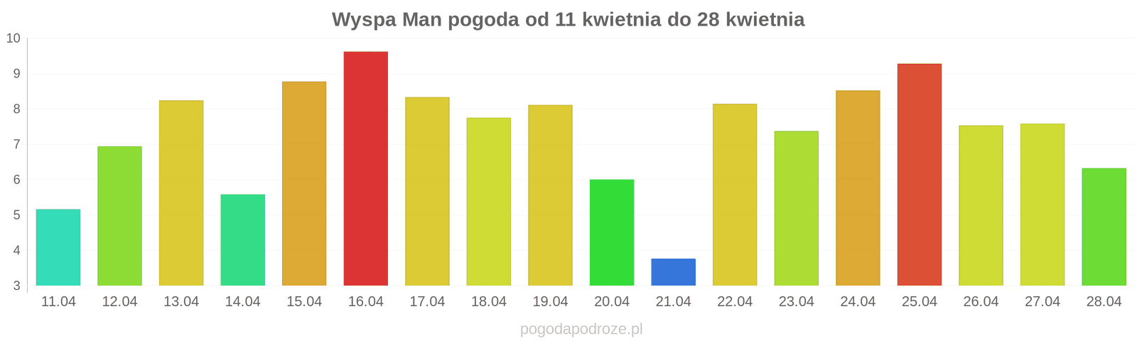 Opis pogody w najbliżych 10 dniach, Sprawdź kiedy będzie najcieplej, kiedy będzie słonecznie, a kiedy jest ryzyko opadów i zachmurzenia w Wyspa Man. Warunki pogodowe oraz prognoza jest aktualizowana codziennie.