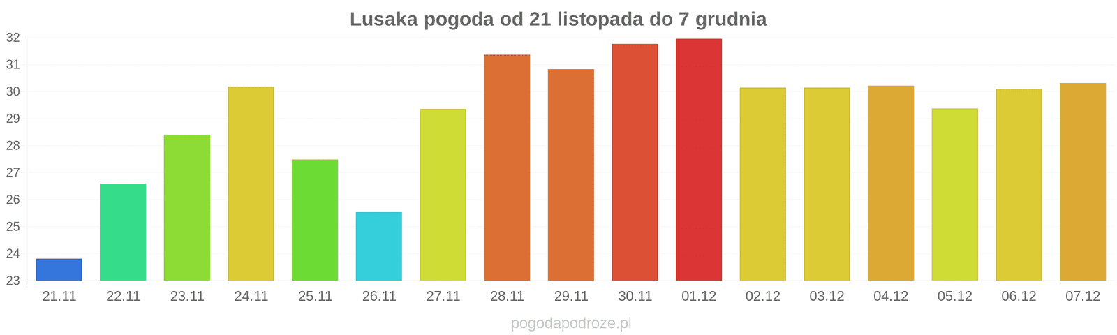 Temperatura wyniesie średnio: 32℃