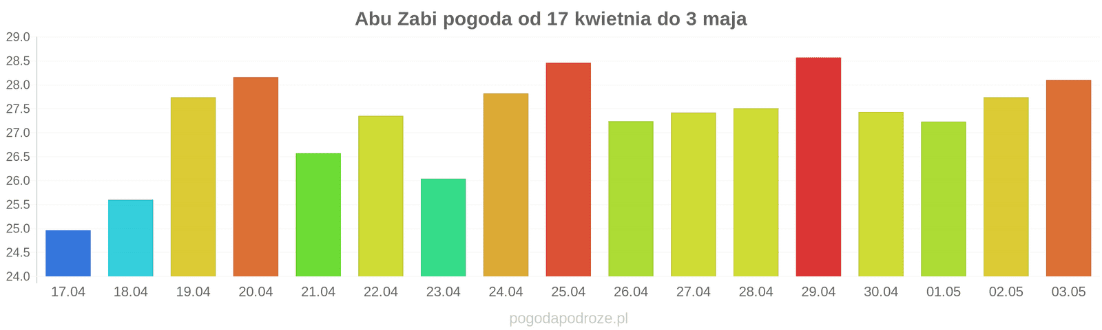 Temperatura wyniesie średnio: 27℃
