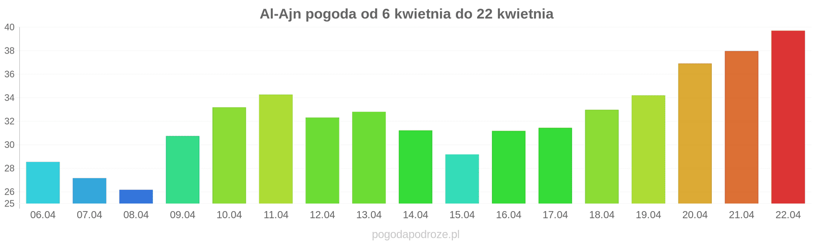Opis pogody w najbliżych 10 dniach, Sprawdź kiedy będzie najcieplej, kiedy będzie słonecznie, a kiedy jest ryzyko opadów i zachmurzenia w Al Ain. Warunki pogodowe oraz prognoza jest aktualizowana codziennie.