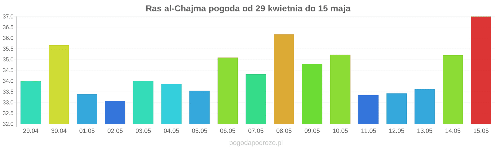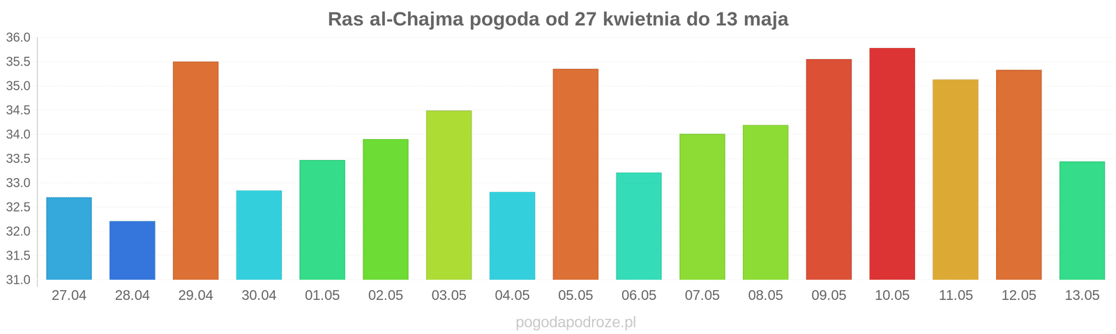 Jeśli wierzyć prognozom z odstępem czasu 7 dni to czeka nas dużo ciepła w Ras Al Khaimah w przyszłym tygodniu. Temperatura w ciągu dnia osiągnie 35 stopni.