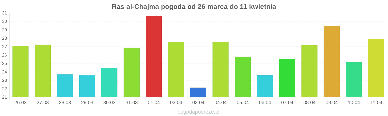 Temperatura wyniesie średnio: 27℃