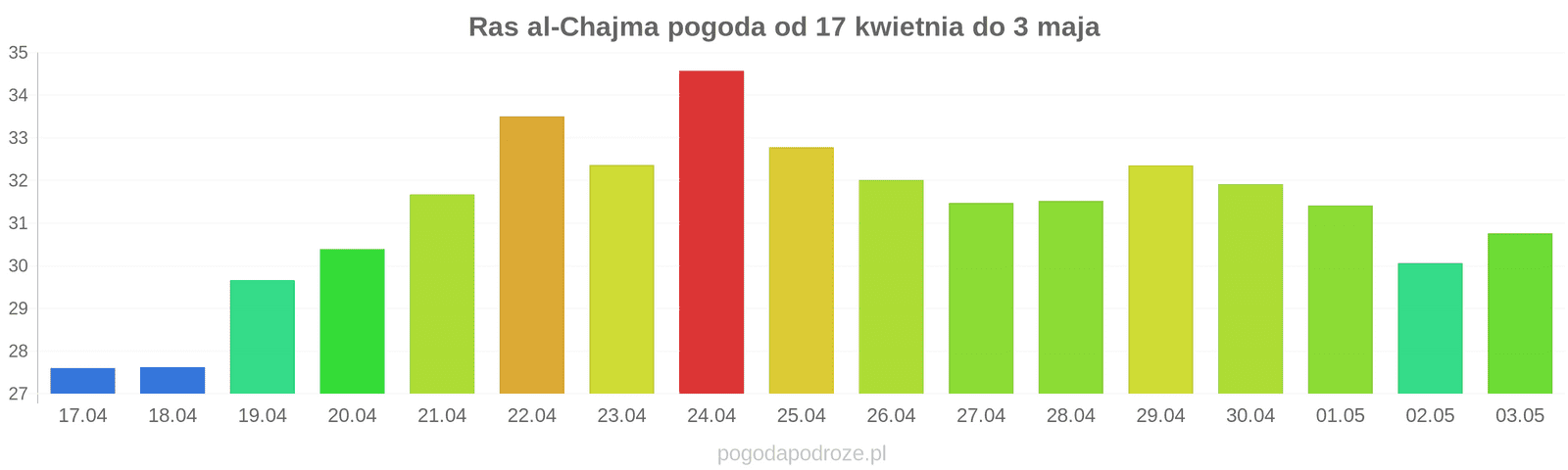 Jeśli wierzyć prognozom z odstępem czasu 7 dni to czeka nas dużo ciepła w Ras Al Khaimah w przyszłym tygodniu. Temperatura w ciągu dnia osiągnie 33 stopnie.